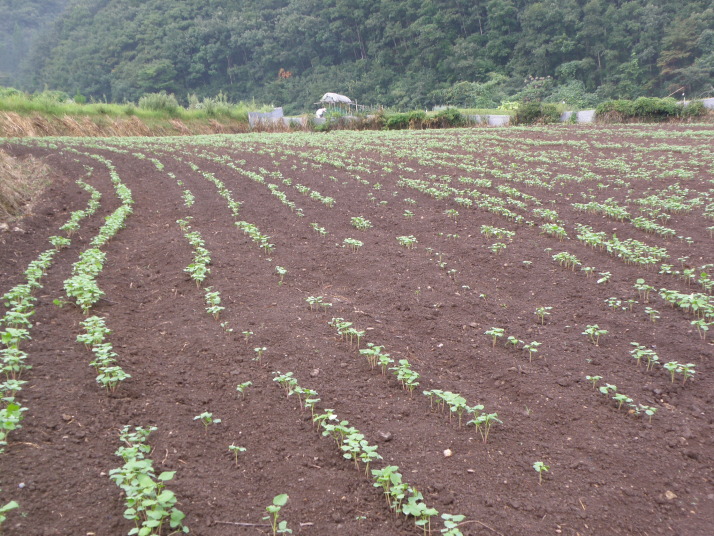 8月22日 遊休地を活用して会員で秋そばの種を播種しました。約12a