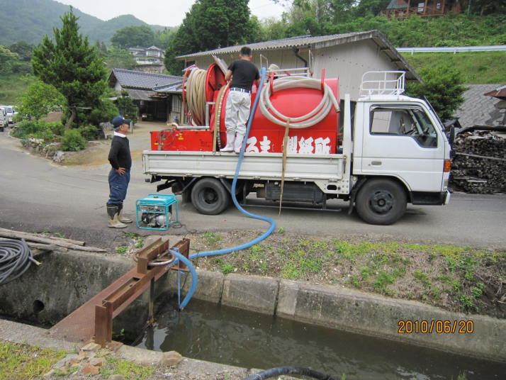午前8時30分より作業を開始し、11時に終了しました。吹き付け面積は、約1900u。