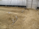 マルチを張り、定植の準備は完了しました。また、夏の暑さ対策に1棟のみファンを取り付けました。